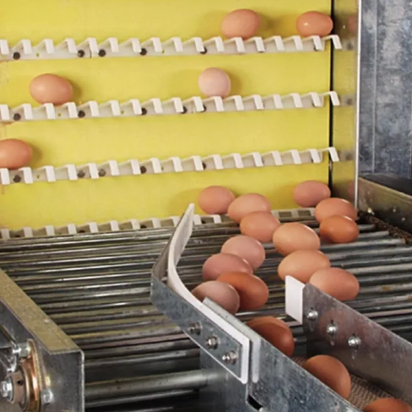 Автоматическая транспортировка: конец желоба для яиц соединён с конвейером; когда яйца попадают на конвейер, они транспортируются к временной зоне хранения в соответствии с заданной скоростью.
